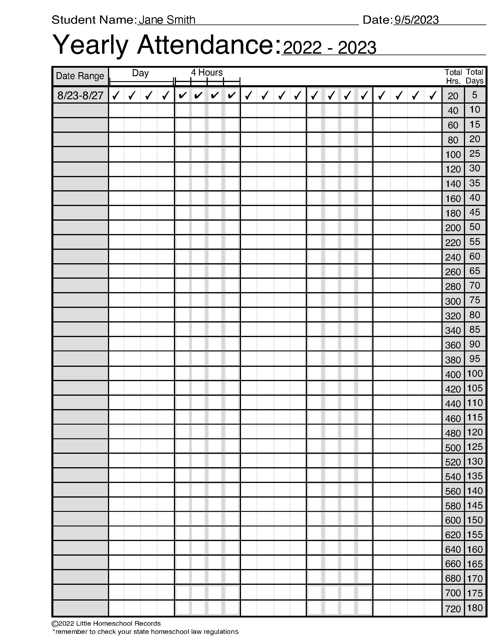 Are you looking for a convenient way to track your homeschool attendance over the course of 180 days? Keeping tabs on attendance is essential for homeschooling parents to ensure compliance with state regulations and monitor student progress.