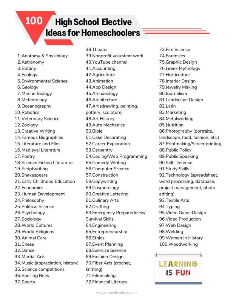When planning your homeschool curriculum, it’s essential to consider your child’s future goals and interests. This printable course list can serve as a guide to ensure that your child meets graduation requirements and prepares for college or a career after high school.