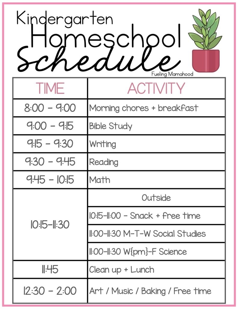 Printable Kindergarten Homeschool Schedule